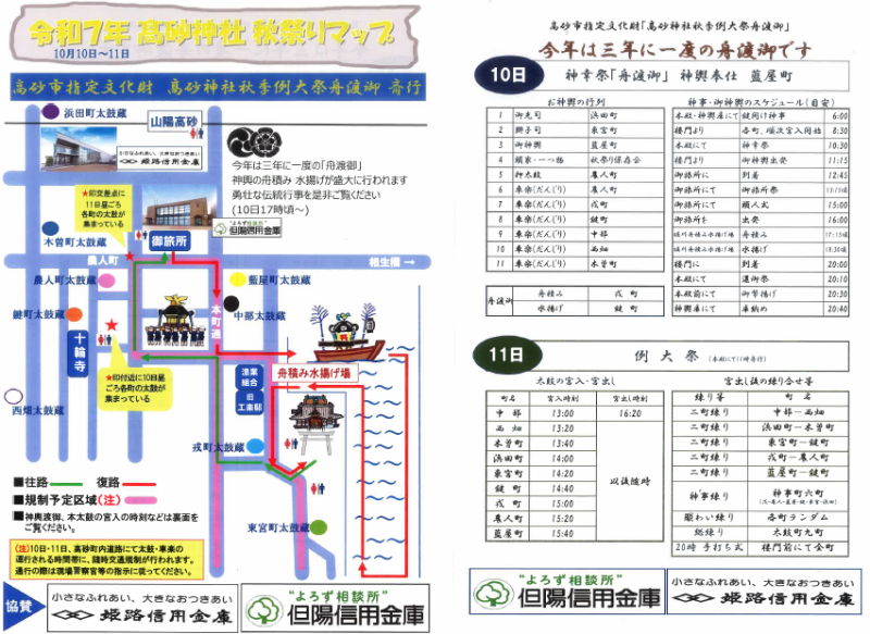 10月10日、11日に「高砂神社 秋祭り」が行われます。